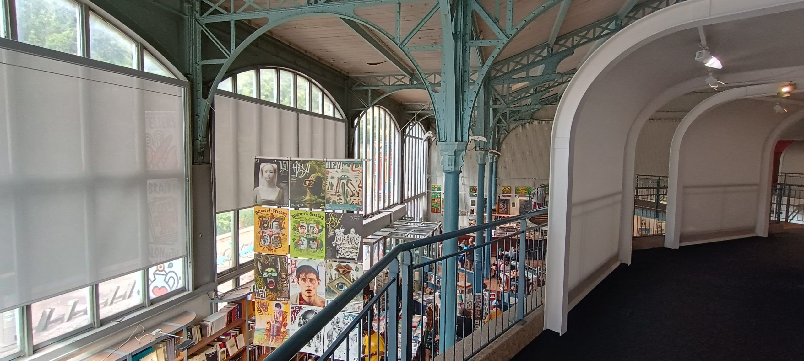 The upstairs exhibit area overlooks the bookshop.