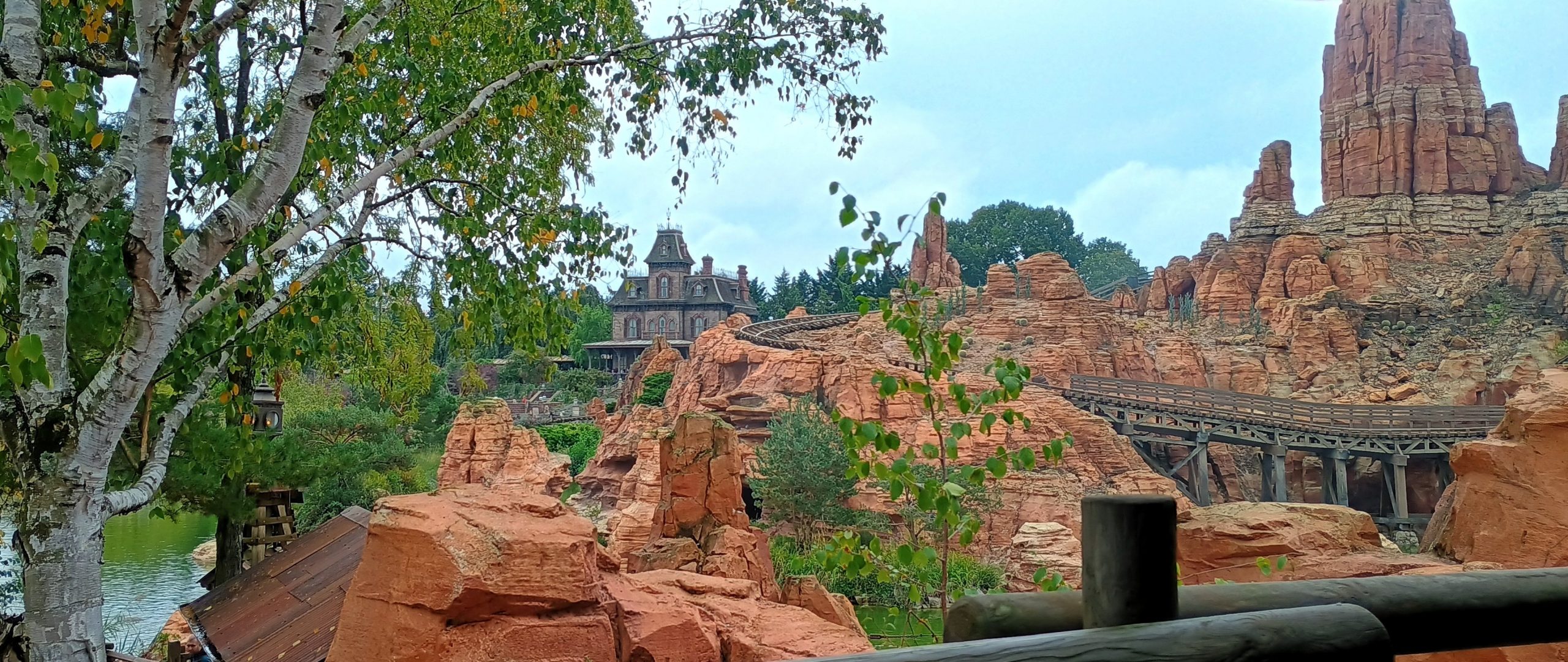 The roller coaster is on its own island! I’d say that it’s better than Big Thunder Mountain in CA.