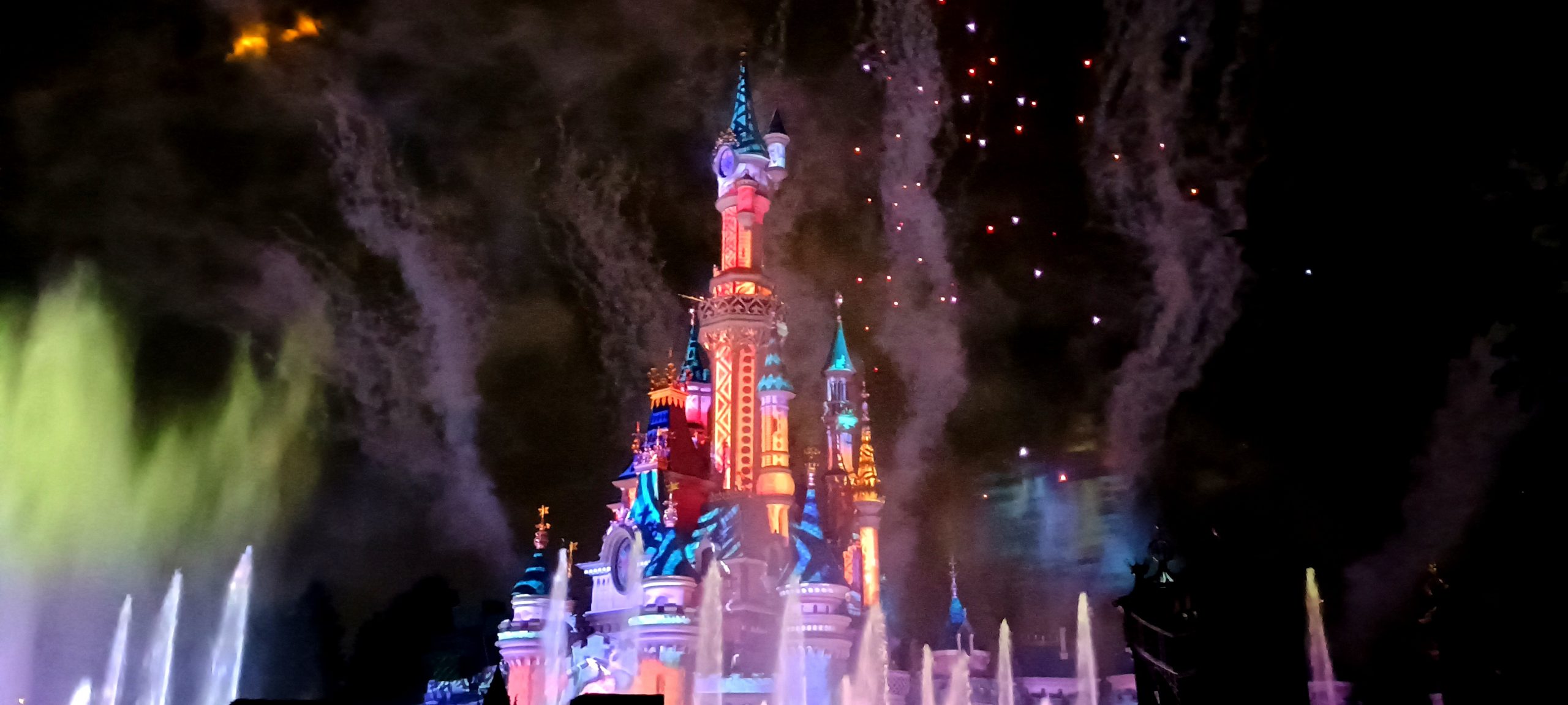 And we saved the best for last. This was really a treat! They project videos onto the castle at night. The scope and complexity of the show is wild. They have not only the projection system, but a fountain show (with fire), lasers, fireworks, and a drone show all in one. Check out the images and videos below! All-in-all the best show I’ve ever seen of this type. In fact the only show that comes close is the World Of Color show in Disneyland California Adventure (which I would say is on par but they’re so different). Honestly, this show is so good it’s almost worth the price of admission, lodging, and transportation just to see it!