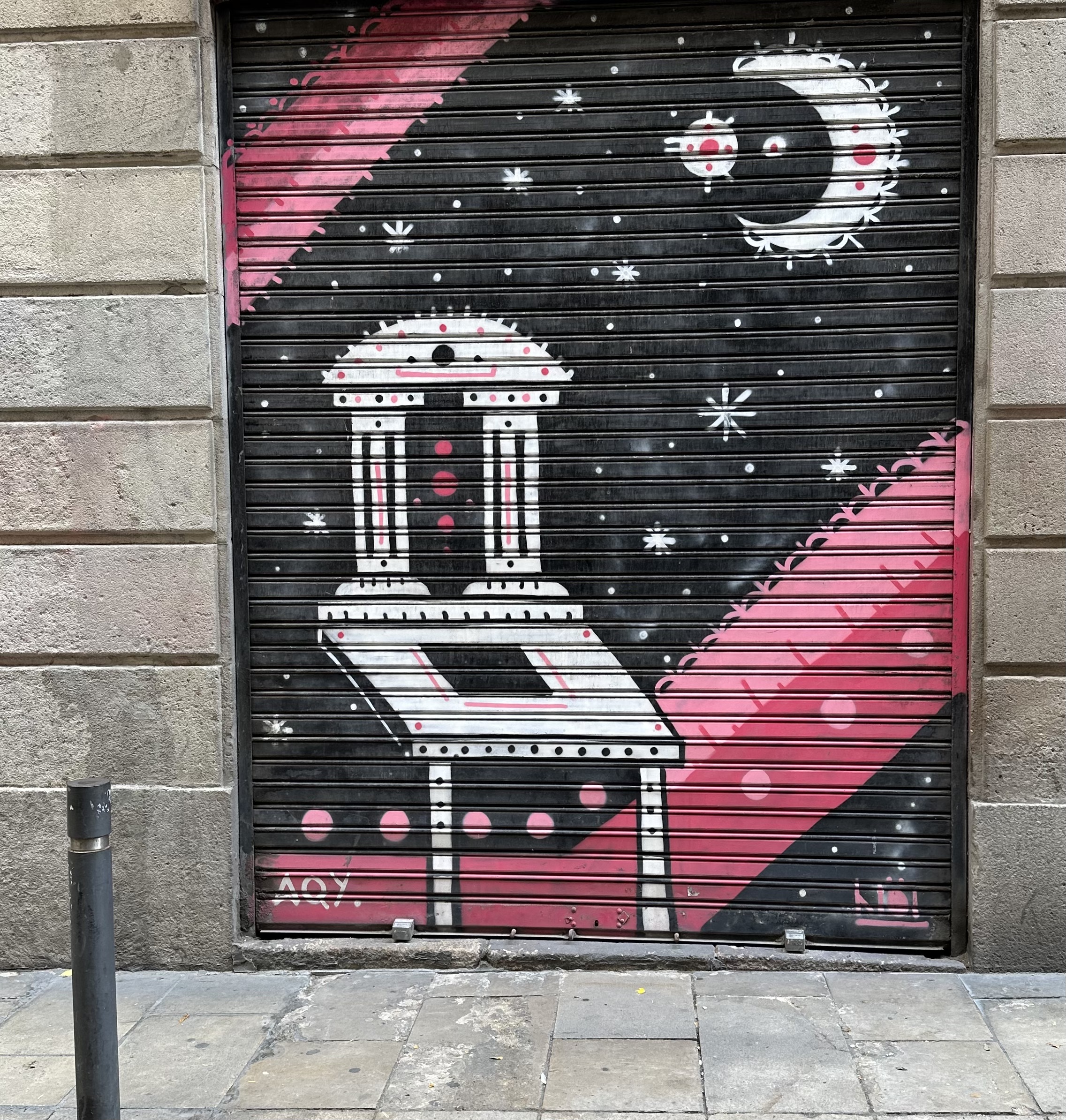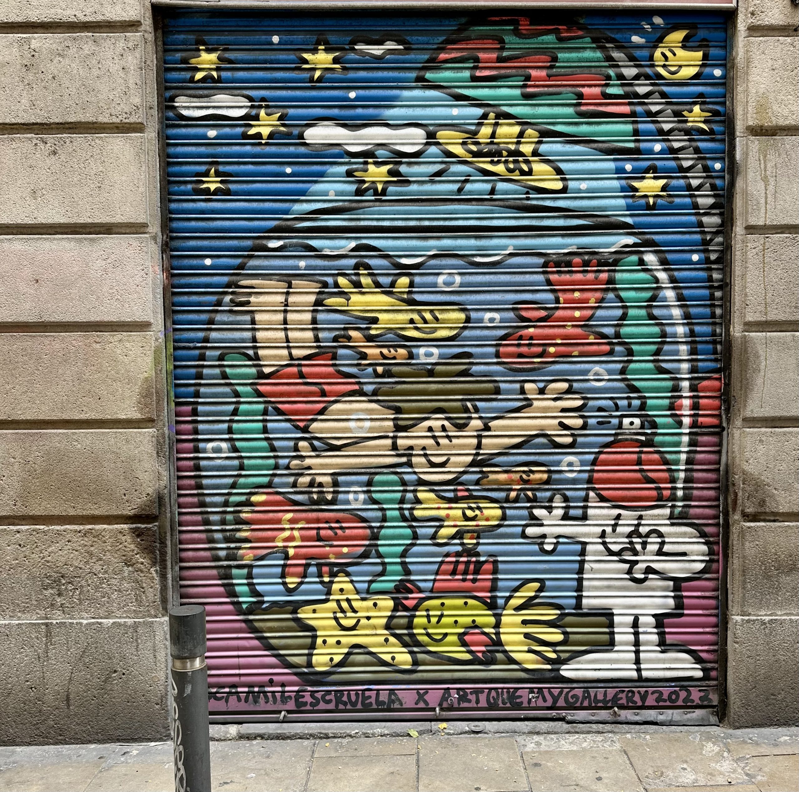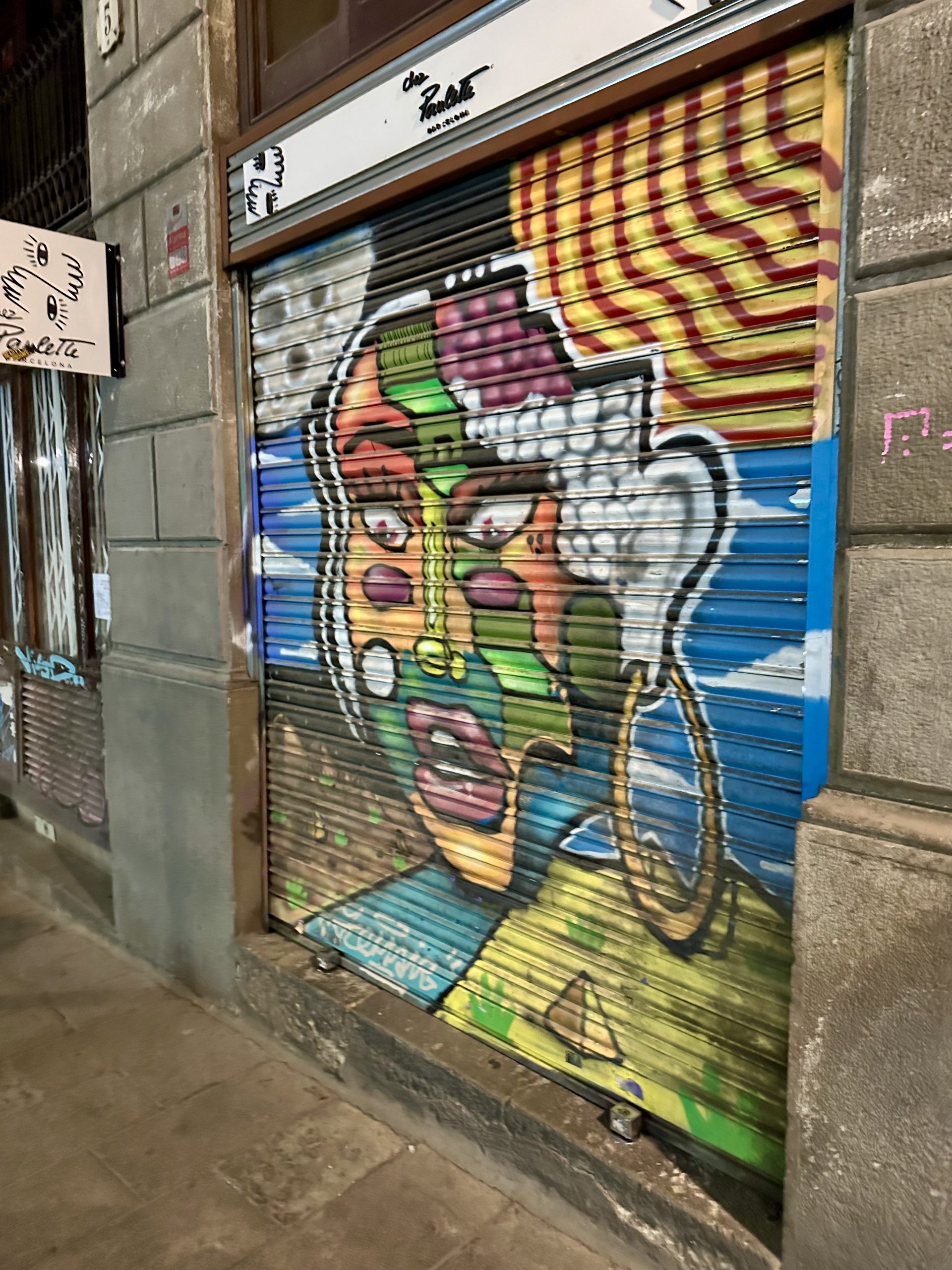 Raw art, art of the streets, art created in the dark, art for all… graffiti art has always held a special place in my heart, and some of my favorite artists, including Basquiat and Keith Haring, rose to fame through their graffiti work. The first time I visited Barcelona, about 15 years ago, I stumbled upon a huge Basquiat exhibit at a random gallery and was awed to see so much of his work in person. This visit, I saw numerous art brut artists in museums, including an entire Banksy museum (definitely have mixed feelings about that one. Very well done, but they exist as copies of the originals and are not ‘approved’, then other Banksy’s with authentication from ‘Pest Control’ (look this up, very cool way to stay anonymous and have your work authenticated and who doesn’t love a group called pest control???) MOCA Contemporary art museum with Basquiat, Haring, Warhol, Banksy and many others. But the real winner of this trip, for me, was wandering the streets of Barcelona where every roll-up door (that covers most shops when they’re closed) becomes a possible canvas. The streets came alive with graffiti on every surface. That said, there were also some really depressing things, like political slogans and tags sprayed on ancient statues and beautiful marble, but those were the exceptions. We loved taking night walks and delighting in the massive art that surrounded us. And as we walked, we stumbled onto all kinds of different adventures: we danced on the steps of the Inquisition, followed the sound of music to a giant youth street party, sat by fountains in the dark, listened to street busquers everywhere. I will hold the memories of hunting for graffiti in this beautiful city close.