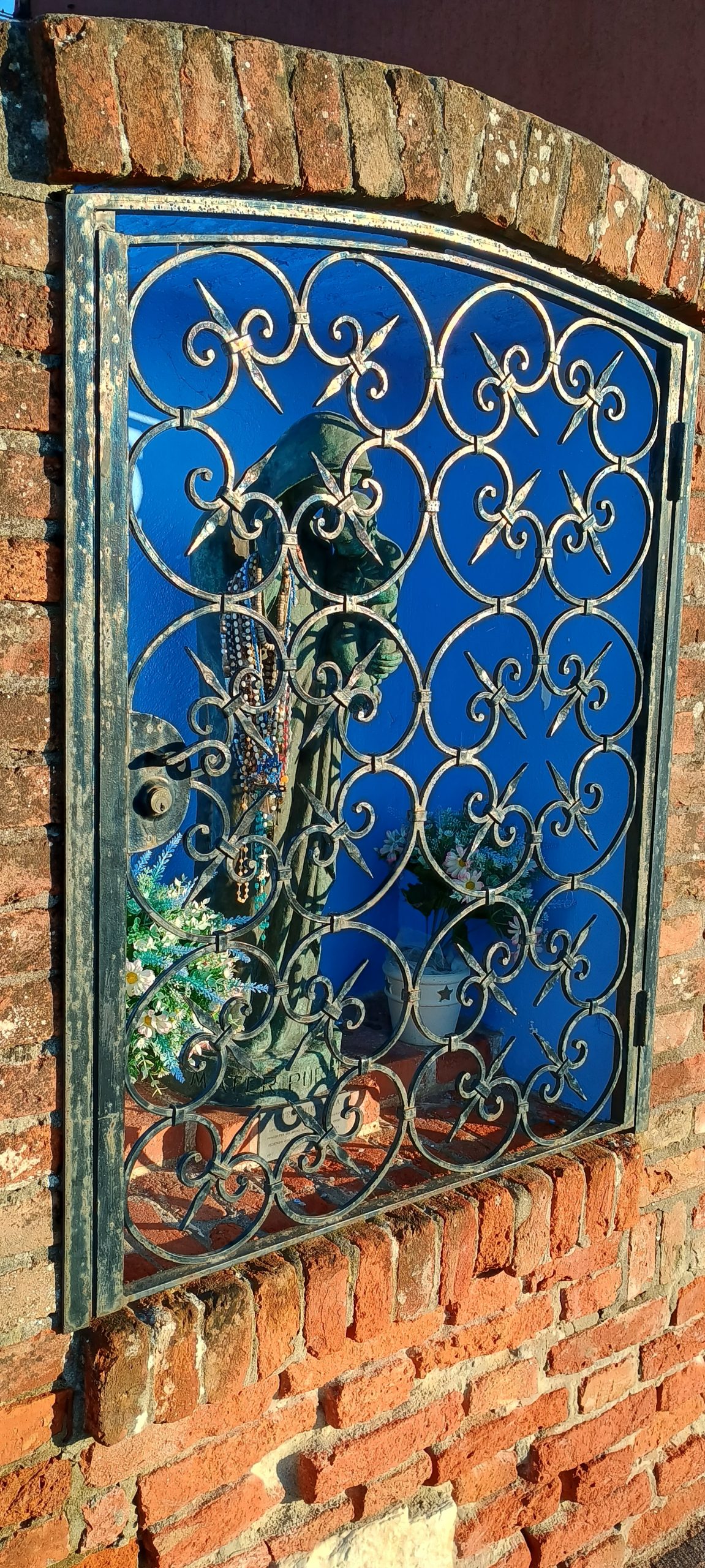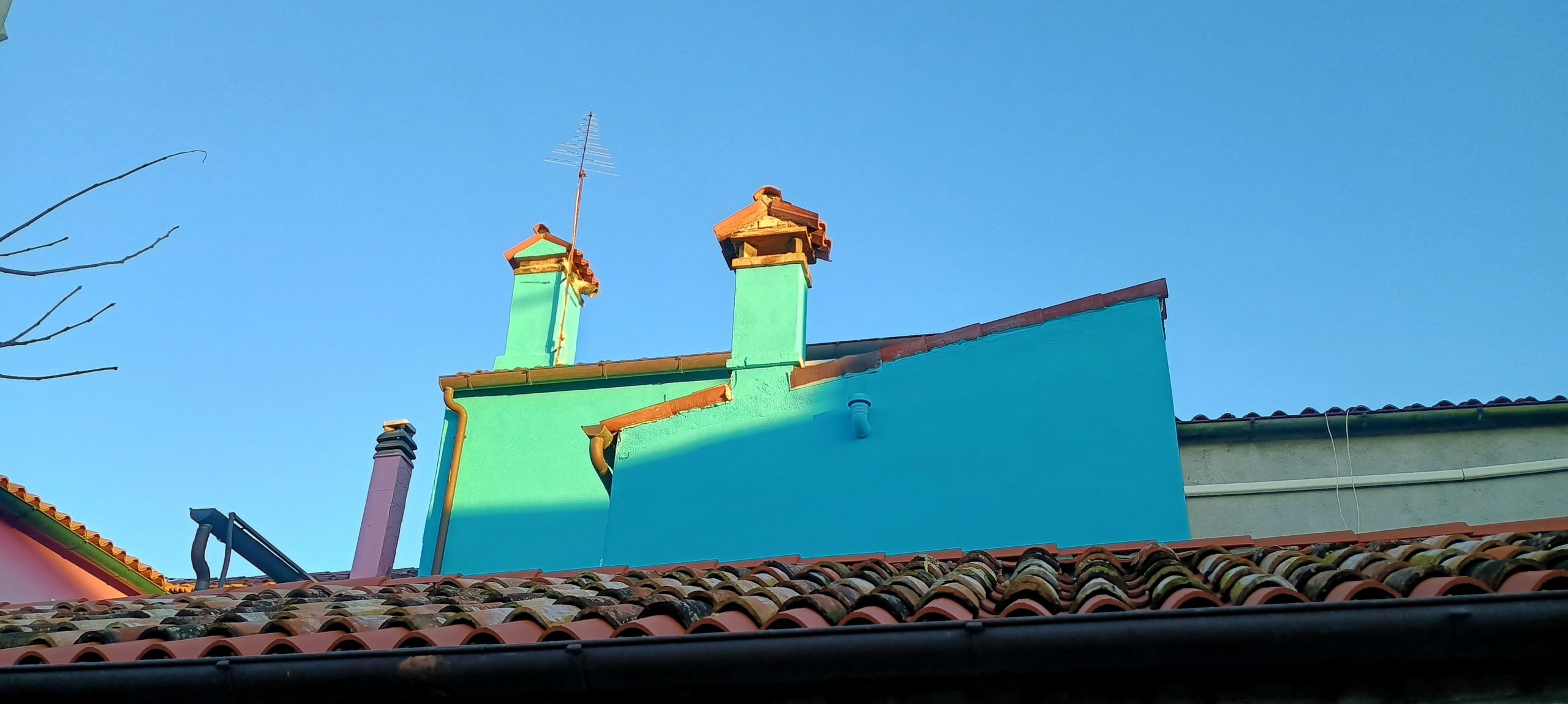 It’s hard to see here, but this is a little shrine that has been integrated into a wallWow! That tower is really crooked. The scaffolding makes sense nowI had to physically run to get this shot before the sun went down 🙂This island has unique chimney shapes