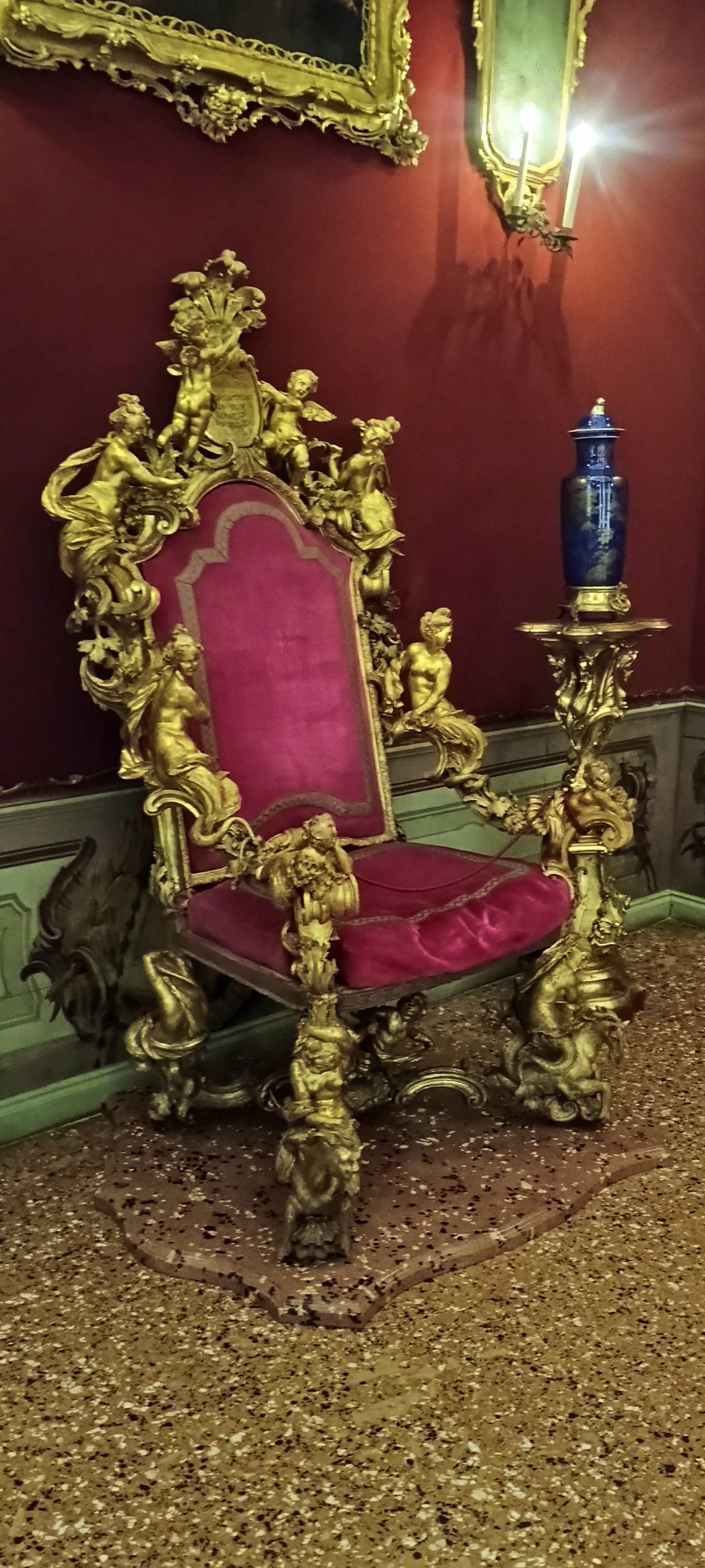 This was a “new” nobility manor. In Venice to get into being in the “old” nobility (the families that really ran Venice) you had to become part of the Venice nobility before about 1300. They “closed the nobility book” as they called it. Everyone else was “new” nobility. Ca’ Rezzonico was part of this category, but they were esteemed in the city and went on to have important government positions in Venice AND even a Pope (I think)!