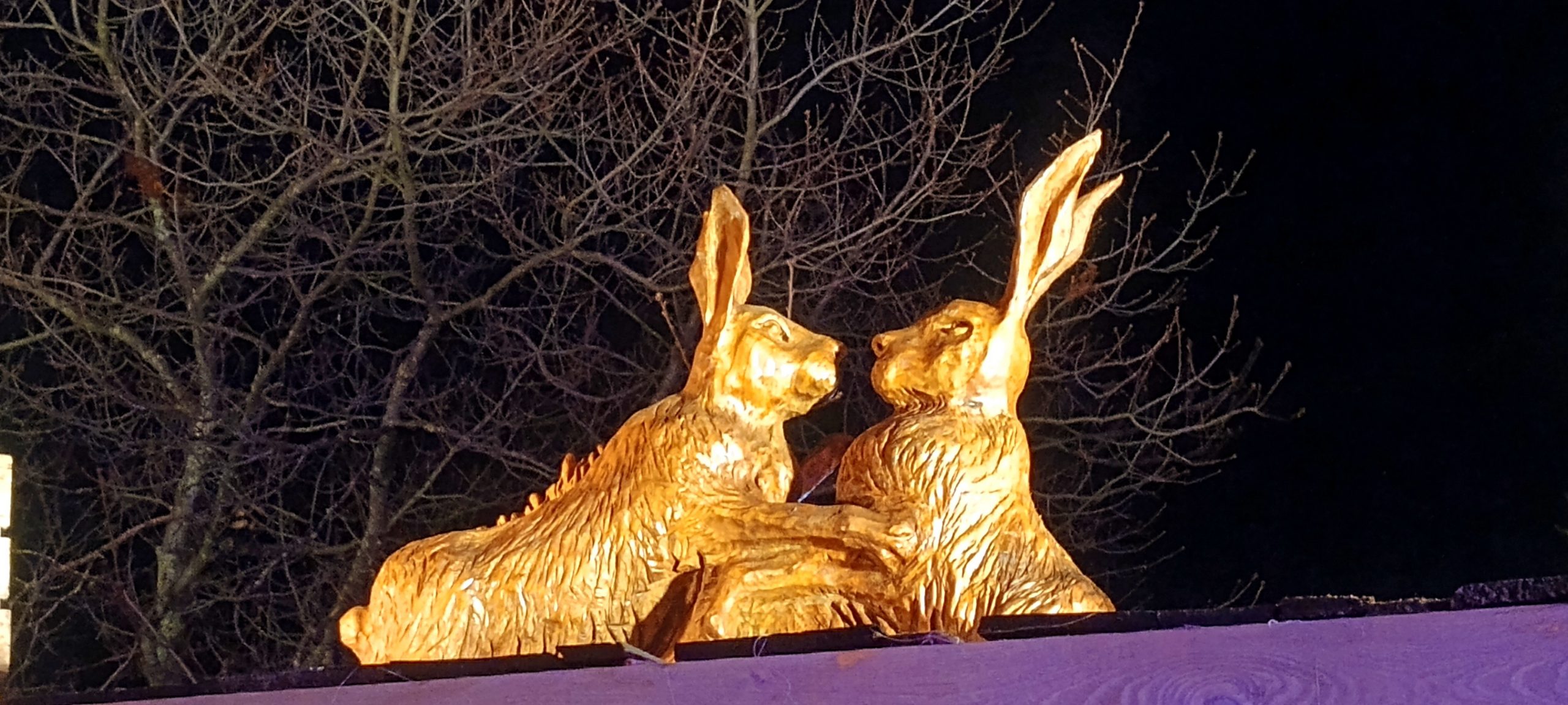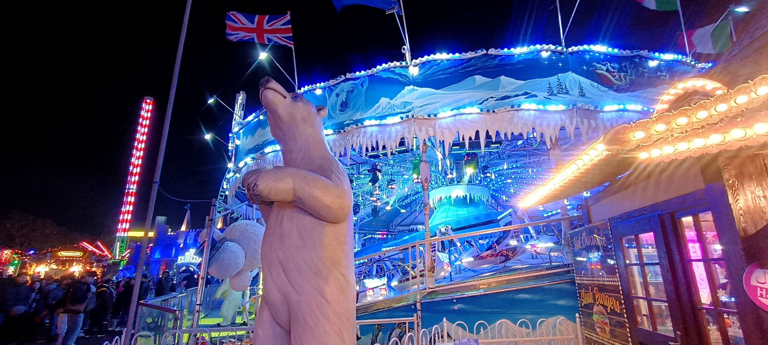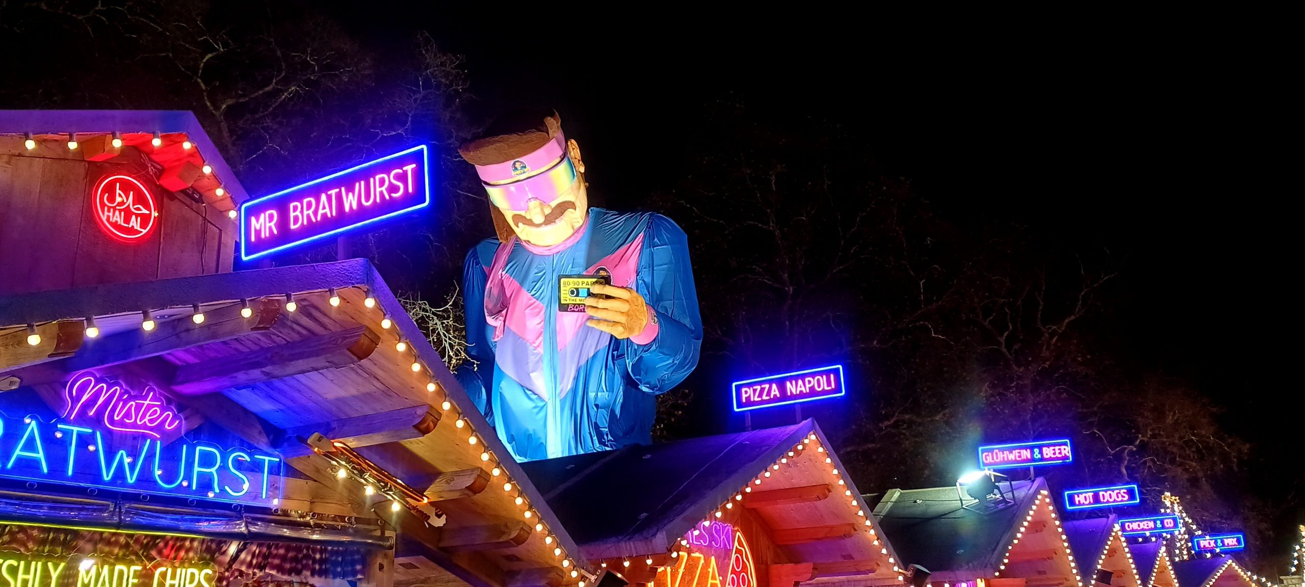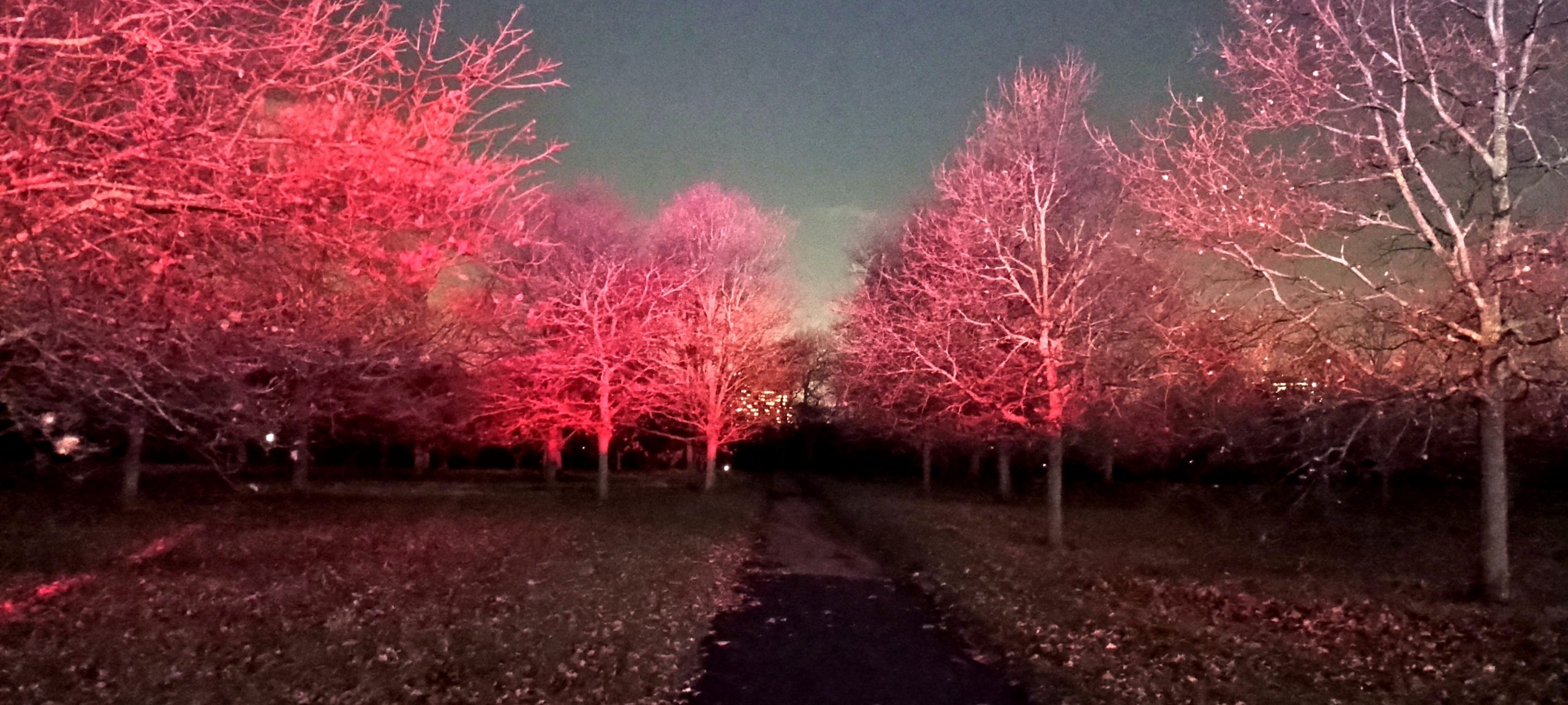 The Winter Wonderland This place was a lot of fun π I broke out the ice sculpture exhibition: “The Magical Ice Kingdom” into a “part 3” post. The lights from the fair are lighting up the forest around it
