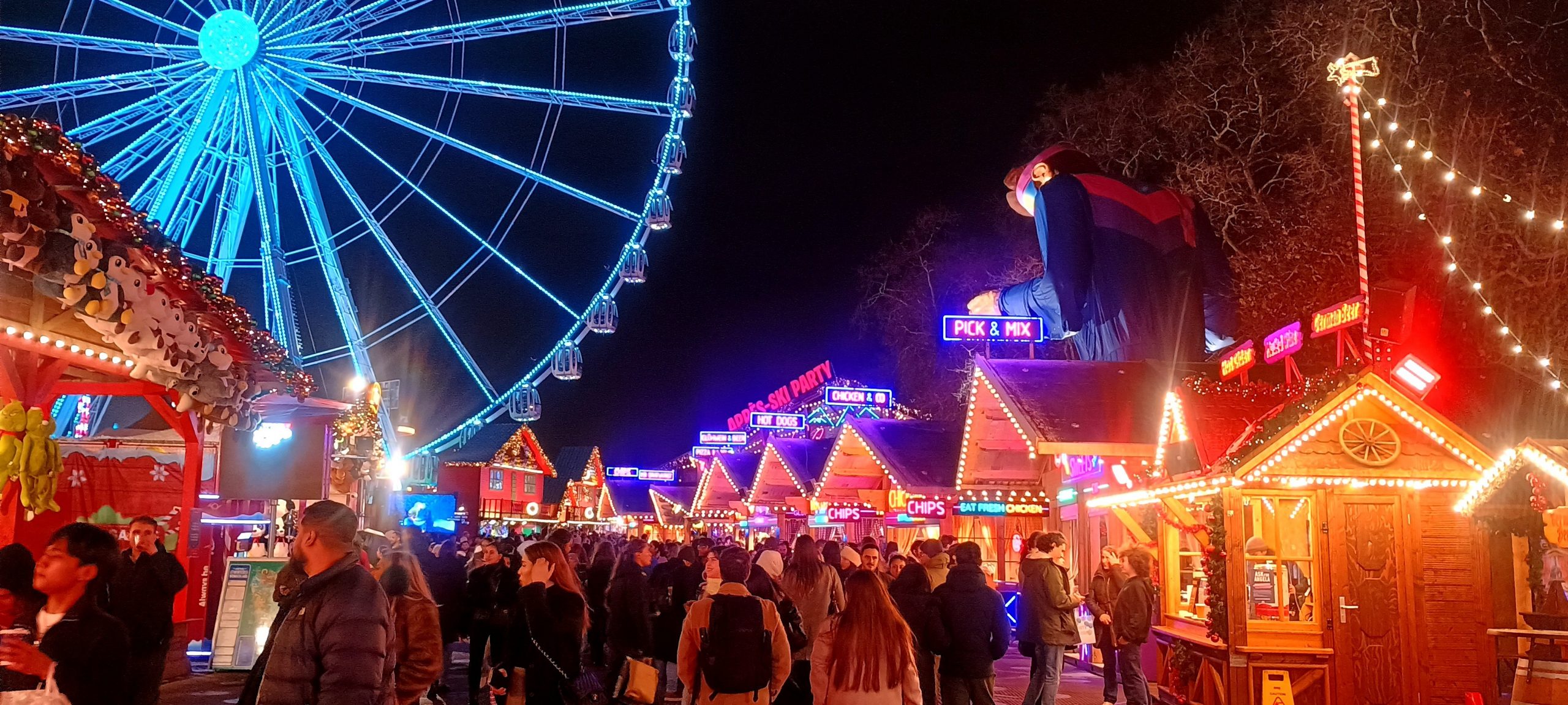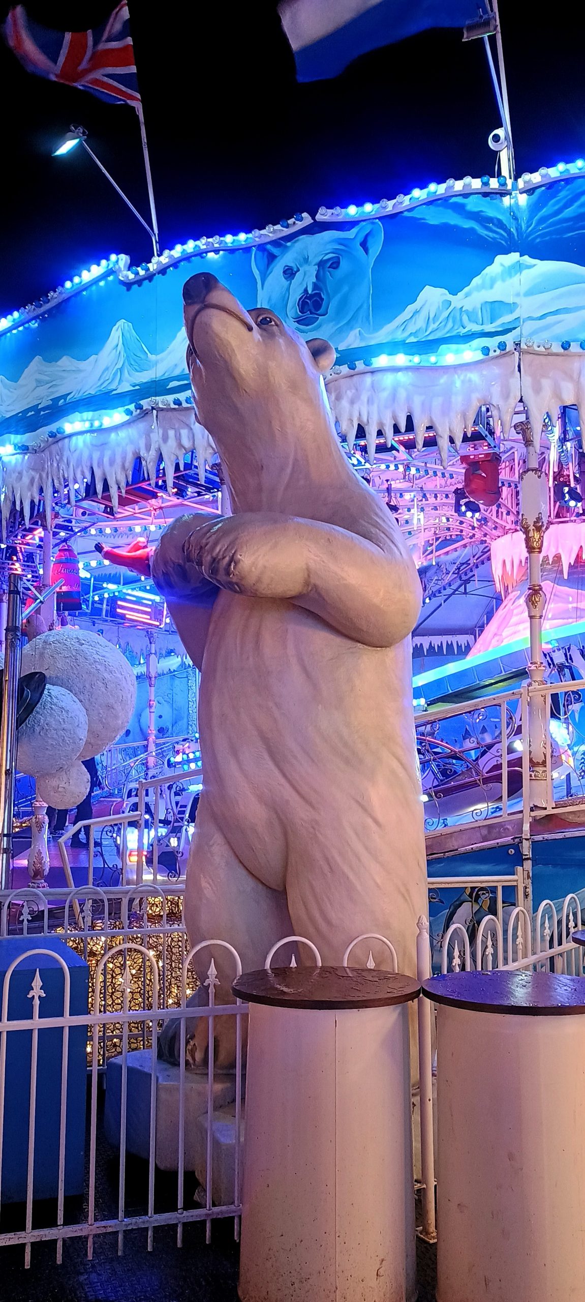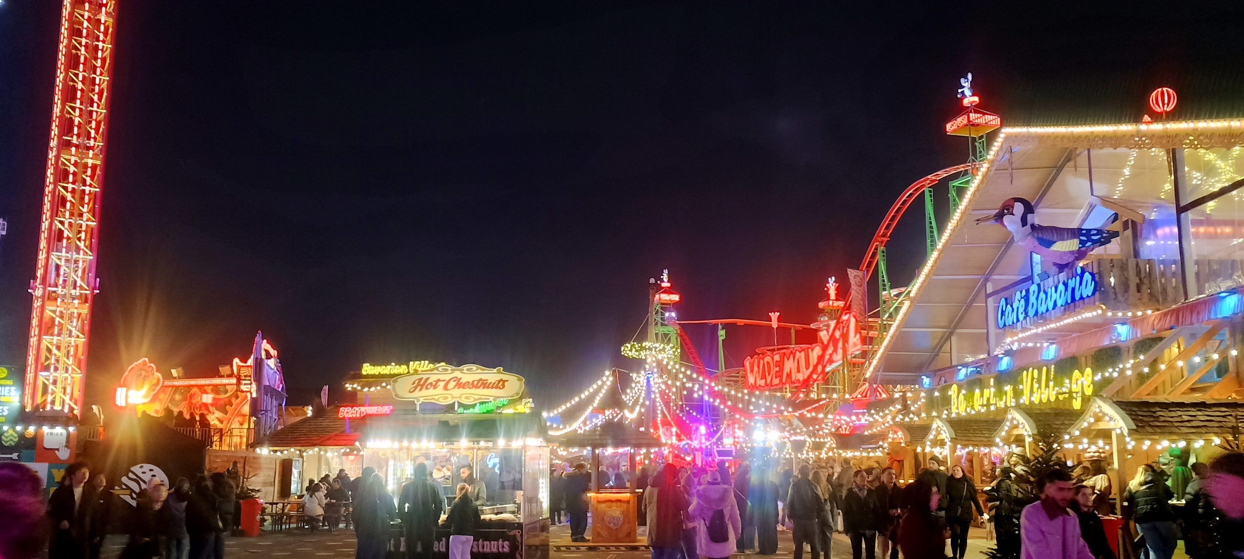 The Winter Wonderland This place was a lot of fun π I broke out the ice sculpture exhibition: “The Magical Ice Kingdom” into a “part 3” post. The lights from the fair are lighting up the forest around it
