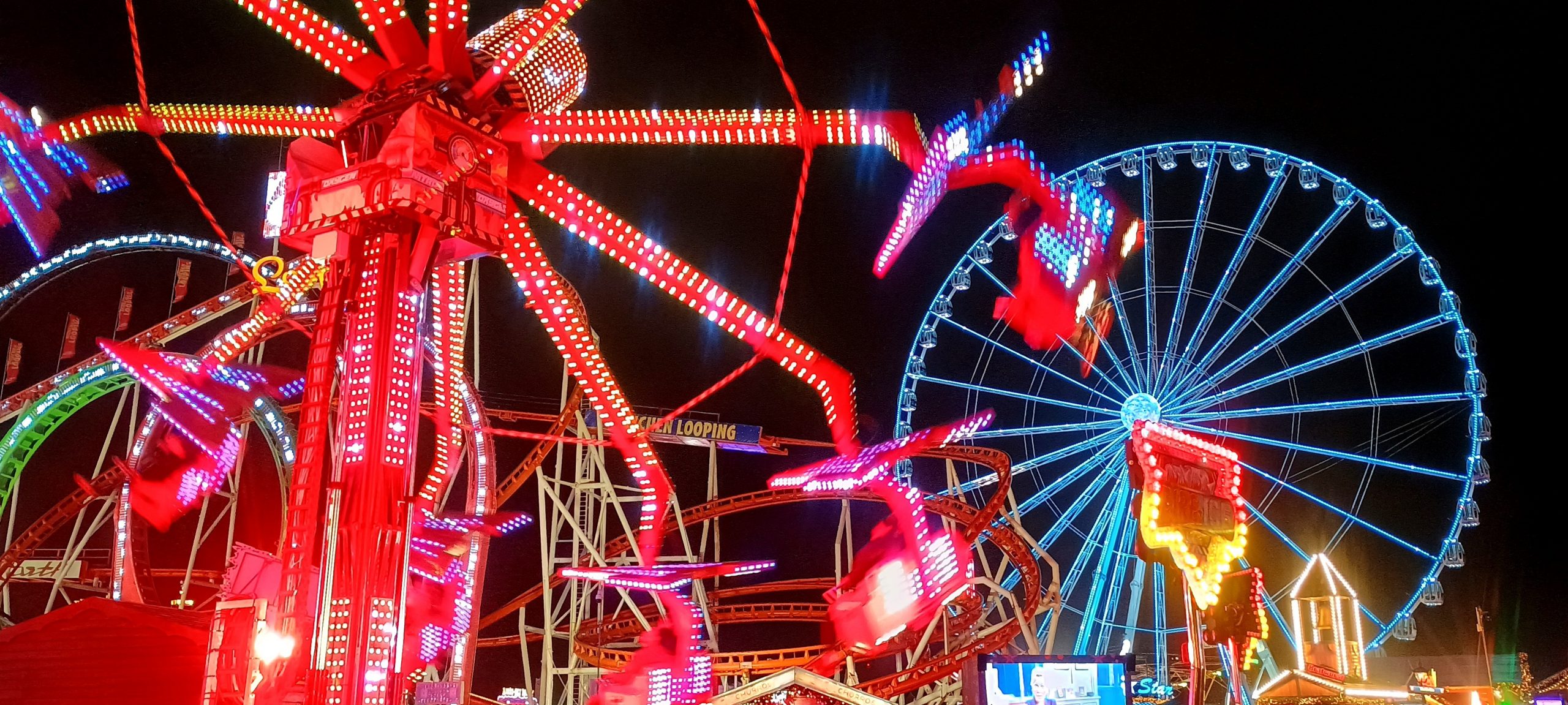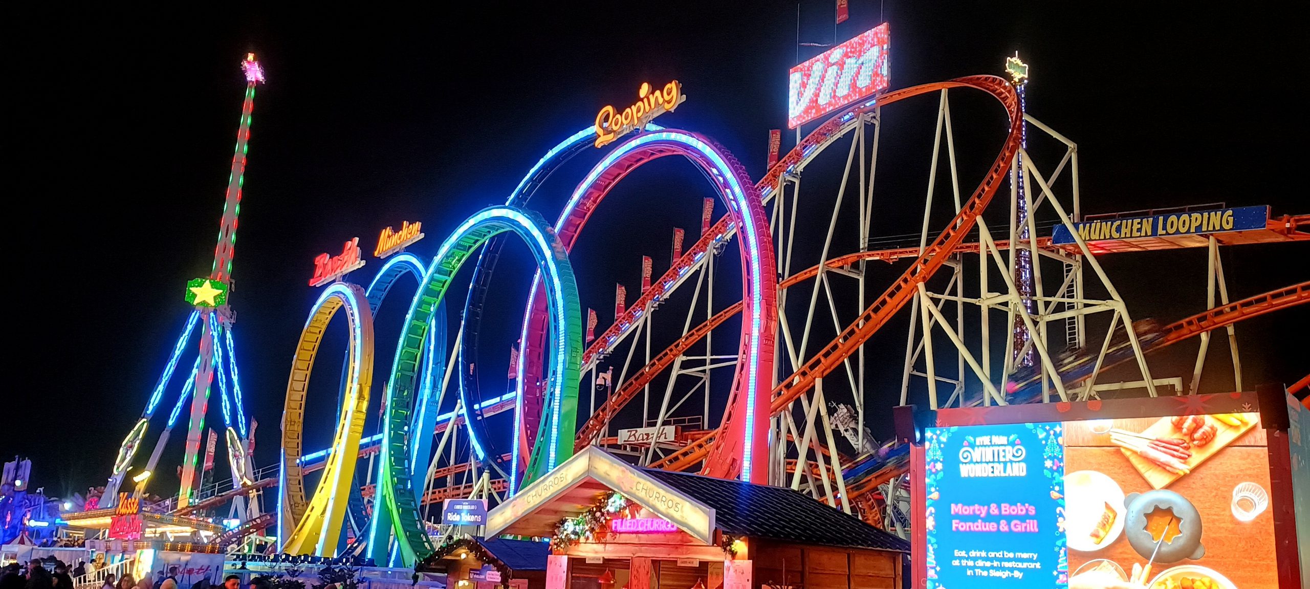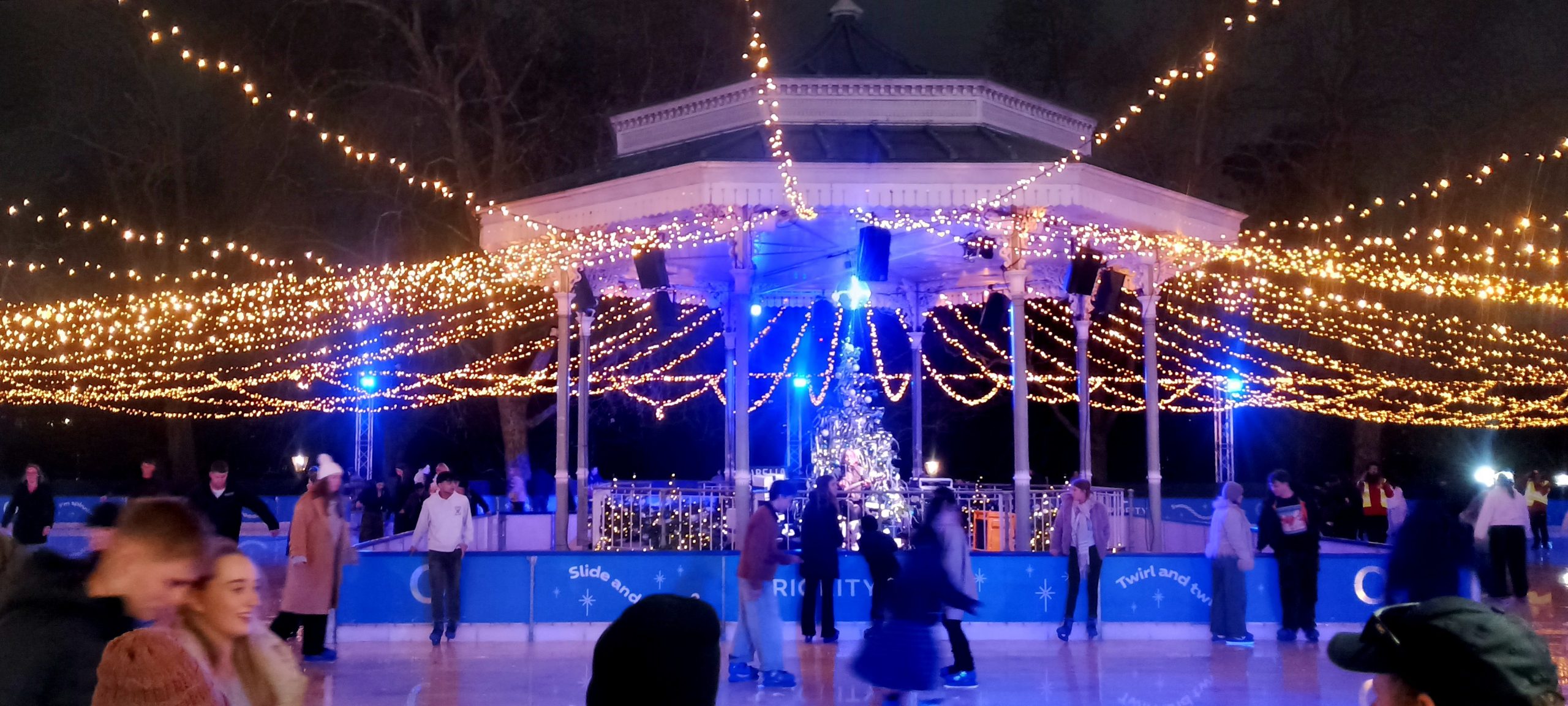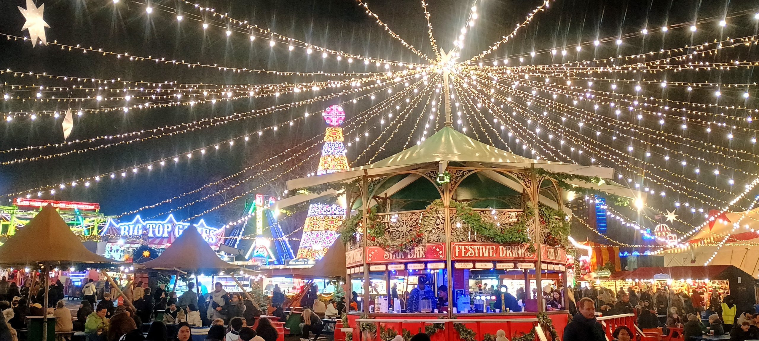 The Winter Wonderland This place was a lot of fun π I broke out the ice sculpture exhibition: “The Magical Ice Kingdom” into a “part 3” post. The lights from the fair are lighting up the forest around it